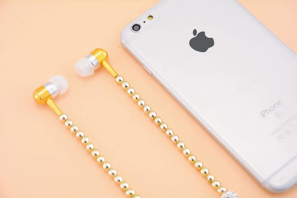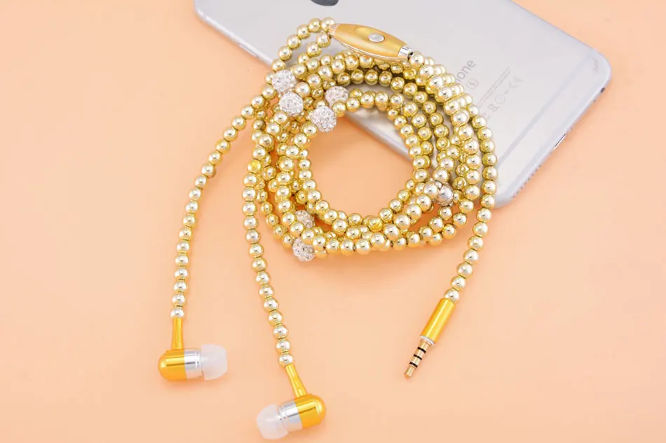 Rhinestone Necklace Earphones:Rhinestone Pearl Earphones