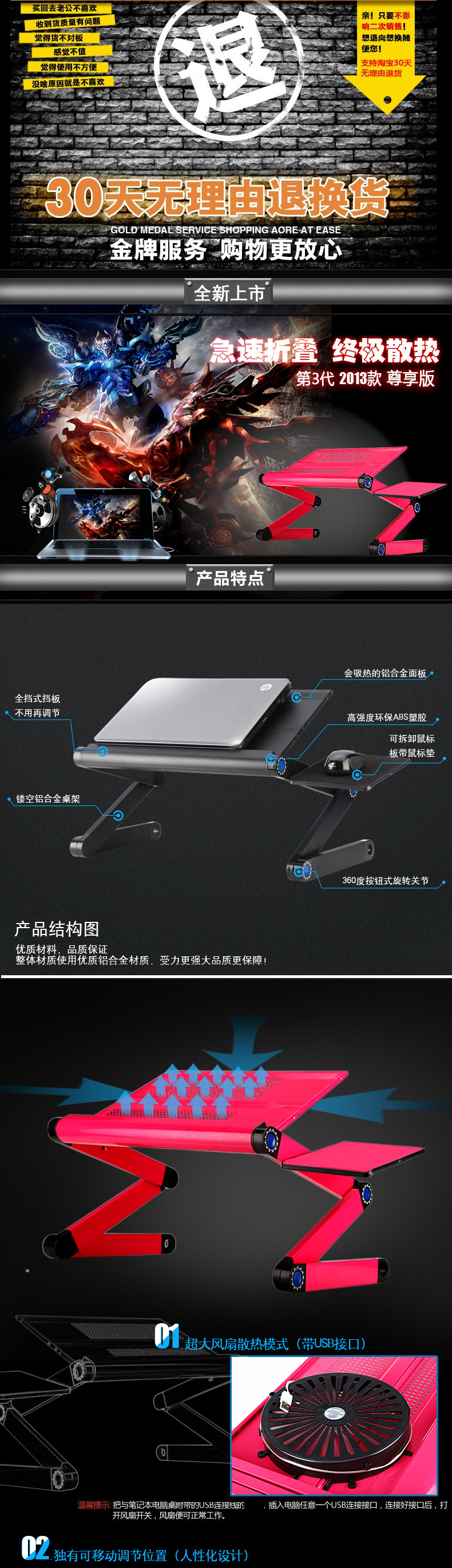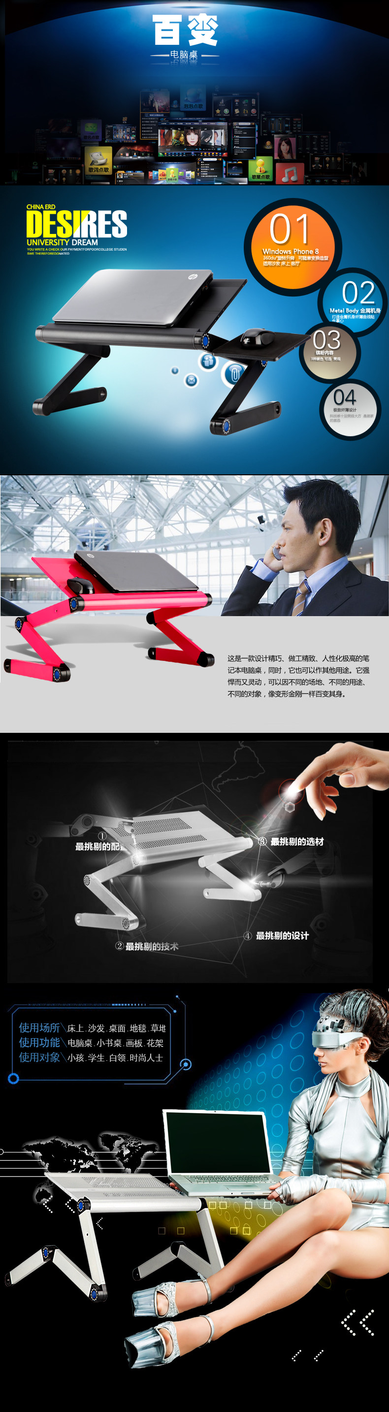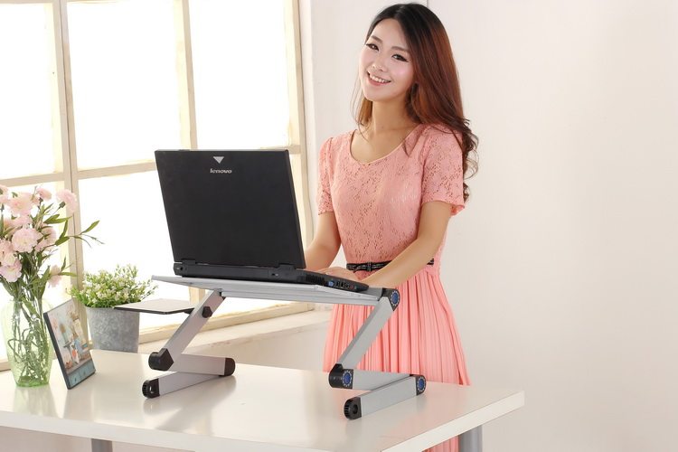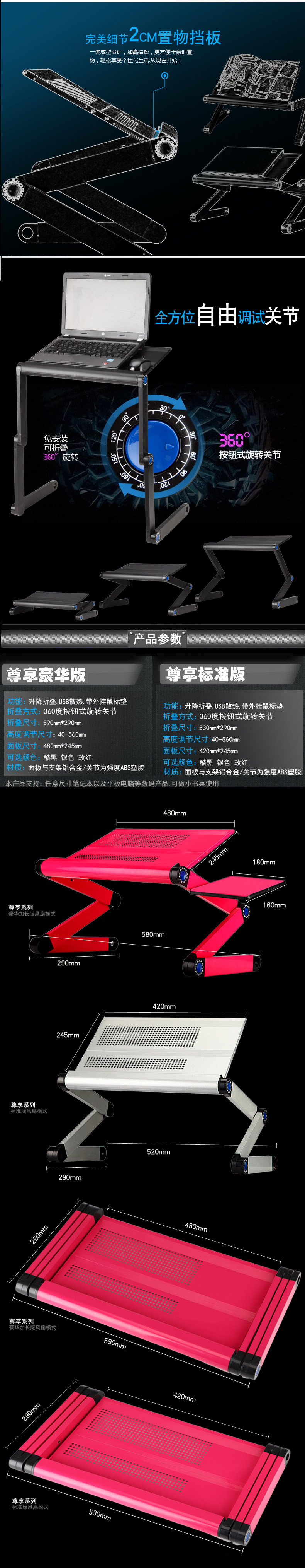 Adjustable Vented Laptop Table Laptop Computer Desk Portable Bed Tray Book Stand Multifuctional & Ergonomics Design Dual Layer Tabletop up to 17"