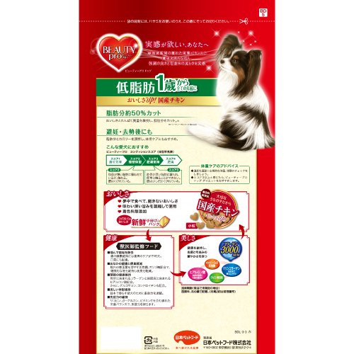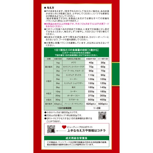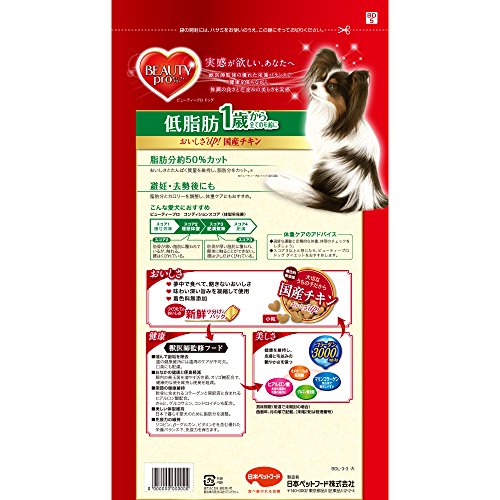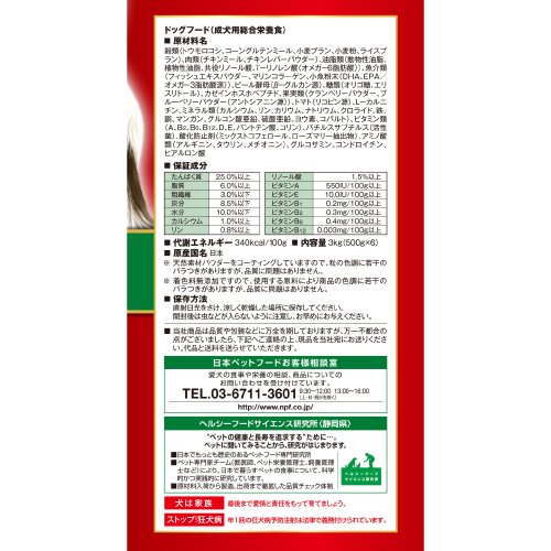 原材料:穀類(トウモロコシ、コーングルテンミール、小麦ブラン、小麦粉、ライスブラン)、肉類(チキンミール、チキンレバーパウダー)、油脂類(動物性油脂、植物性油脂、共役リノール酸、γ-リノレン酸(オメガ-6脂肪酸))、魚介類(フィッシュエキスパウダー、マリンコラーゲン、小魚粉末(DHA、EPA/オメガ-3脂肪酸源))、ビール酵母(β-グルカン源)、糖類(オリゴ糖、エリスリトール)、カゼインホスホペプチド、果実類(クランベリーパウダー、ブルーベリーパウダー(アントシアニン源))、トマト(リコピン源)、L-カルニチン、ミネラル類(カルシウム、リン、カリウム、ナトリウム、クロライド、鉄、銅、マンガン、グルコン酸亜鉛、硫酸亜鉛、ヨウ素、コバルト)、ビタミン類(A、B2、B6、B12、D、E、パントテン酸、コリン)、バチルスサブチルス(活性菌)、酸化防止剤(ミックストコフェロール、ローズマリー抽出物)、アミノ酸類(アルギニン、タウリン、メチオニン)、グルコサミン、コンドロイチン、ヒアルロン酸