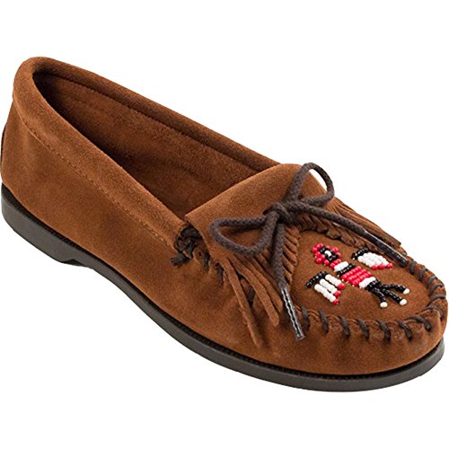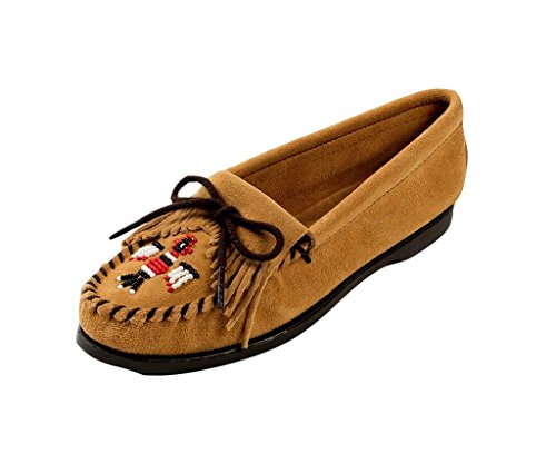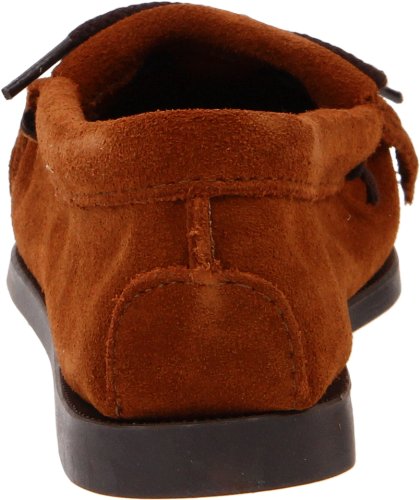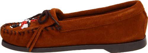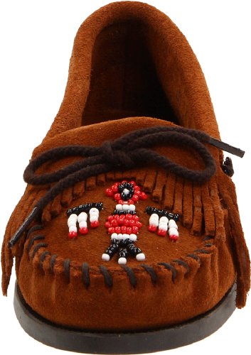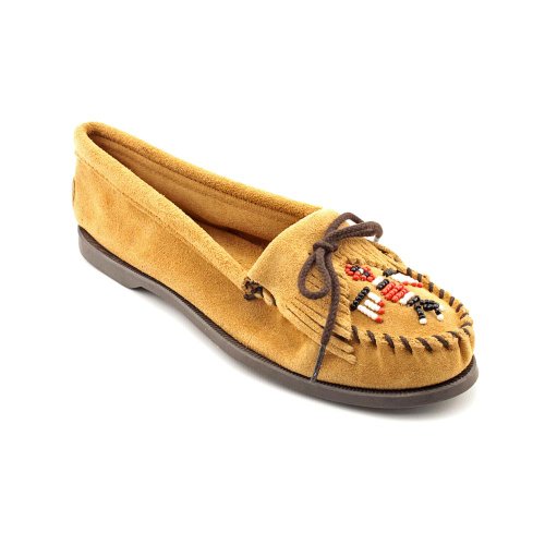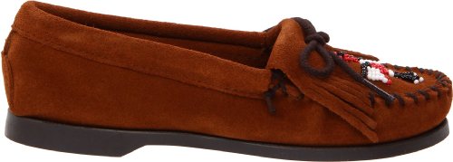With easy slip-on styling and a boat sole that transitions indoors to out, there's a lot to like about this Minnetonka moccasin Cord whipstitching and an attached, graduated kiltie. Round toe.Feature