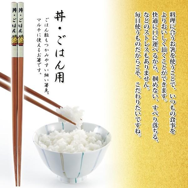 ごはん粒もつかみやすい細い箸先。マルチに使えるお箸です。