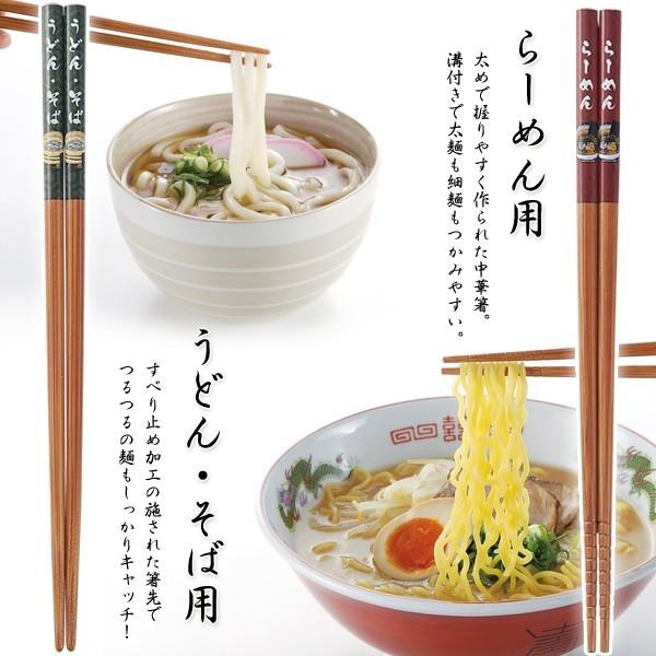 太めで握りやすく作られた中華箸。溝付きで太麺も細麺もつかみやすい!
