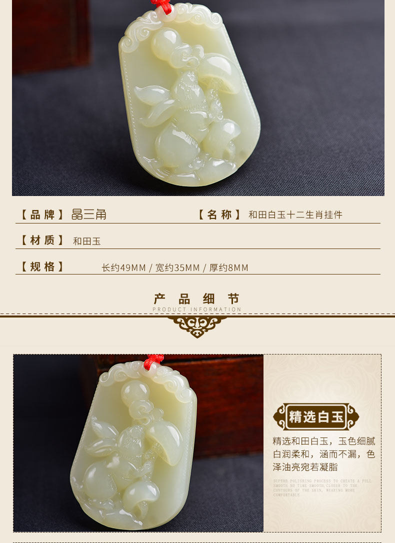 开光和田玉十二生肖吊坠属兔白玉挂件男女款项链玉坠玉佩饰品礼物