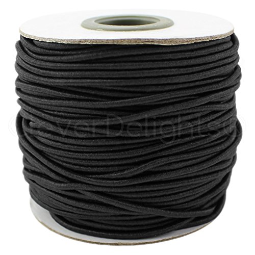 CleverDelights Black Fabric Elastic Cord - 10 Yards - 2mm - Crafts Beading Jewelry Stretch Shock Cording