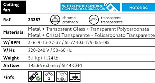 -. Title : Deckenventilator ohne Licht Lorefar MINI ETERFAN energiesparender Design-Ventilator FARO 33382 Verbrauch nur 3,5 bis 32,4W dank Gleichstrommotor Chrom-Gehäuse 3 Transparent-Flügel Durchmesser 128 cm Deckenabstand 45 cm Inkl. 6-Stufen-Fernbedienung Sommer- und Winterbetrieb