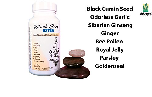 - Feature : Black seed extra nutritional capsules Herbal blend includes Ginger, Siberian Ginseng, Garlic, Bee pollen, Goldenseal, and Royal jelly / 120 Vegetarian capsules / Super nutrition Dietary Supplement / Boost your immune system / Herbal nutrients necessary for proper function of the body.