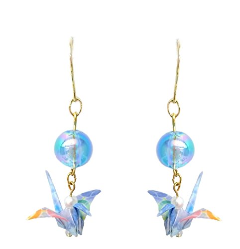 -. Title : 折り鶴 和風イヤリング ピアス 和柄 人気 飾り 鶴 つる アクセサリー カラー5種類 (ピンク・グリーン・ネイビーブルー・ライトブル・ホワイト)