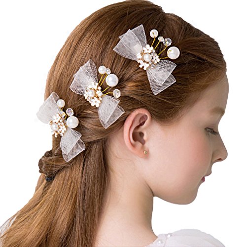 -. Title : DreamYo パール レジン 蝶結び ティアラ 髪飾り クリップ フラワーティアラ ヘアピン 子供
