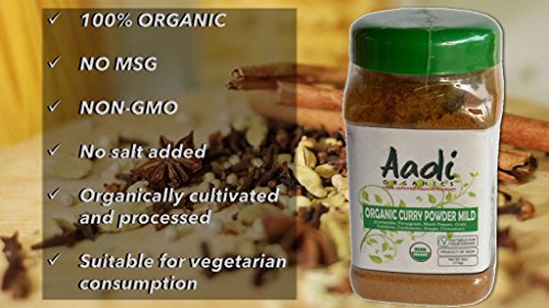 NO SALT, GMO, OR MSG: Use the purest spices to bring out the best out of your dishes, Aadi Organics' Mild Curry Powder includes natural herbs and spices without any salt, GMO, or MSGs