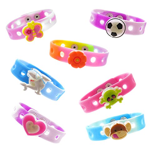 Frogsac 24 Snap Bracelets and 24 Assorted Flashing Light Charms Random Pack- 48 Pcs Total - Great Party Favors
