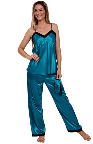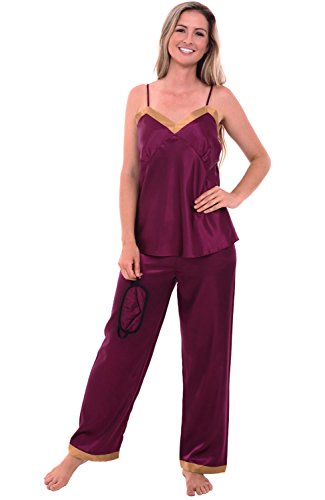 -. Binding : Apparel -. Brand : Alexander Del Rossa -. Department : womens -. Feature : For full Size Chart scroll down to Product Description / Womens cami top & pants pajama set / Adjustable spaghetti strap cami top, feels like silk / Matching silky pj pants for woman / For matching sleepwear choices, search Amazon for Del Rossa womens satin -. Model : A0730 -. ProductGroup : Apparel -. ProductTypeName : SLEEPWEAR -. Title : Del Rossa Women's Satin Cami Tank Pajama Set with Pants and Sleep Mask