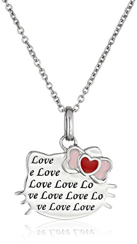 Hello Kitty Streling Silver Heart Bow Love Engraved Silhouette Pendant Necklace