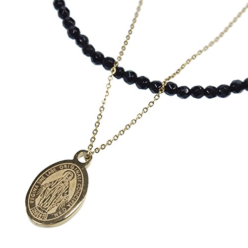 -. Title : 石輝 マリアメダイペンダント 真鍮とオニキスのチェーンアンクレット [168naa]