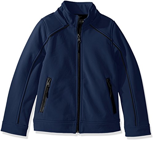 97 percent polyester, 3 percent spandex zipper closure soft-shell water resistant material removable zippered hood with snaps at chin full fleece backing classic, neat look great for chilly weather and mild rainFeature