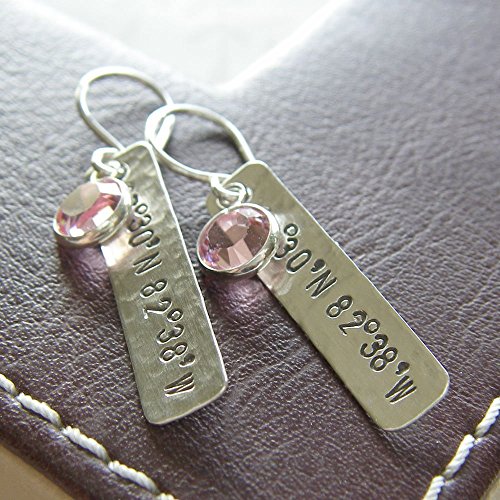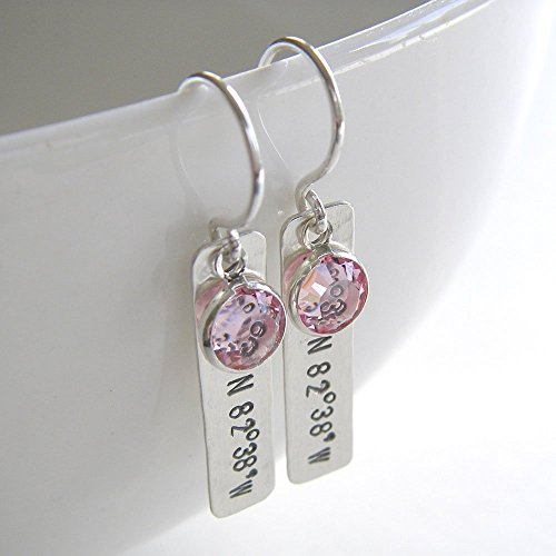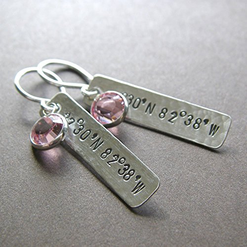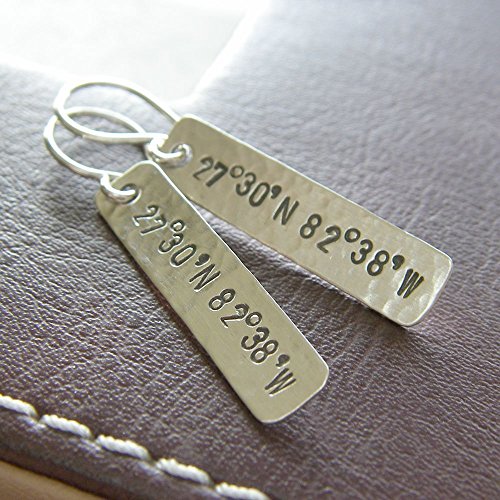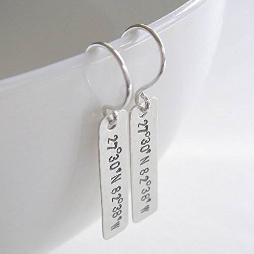 -. Title : 1" Textured Latitude Longitude Bar Dangle Earrings Custom Hand Stamped Sterling Silver Personalized Jewelry