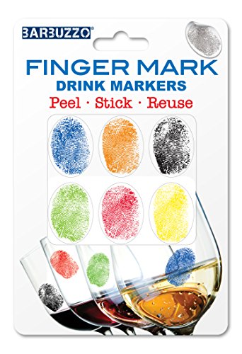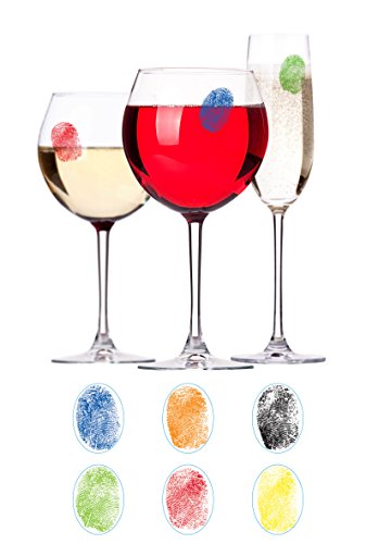 Barbuzzo Finger Mark Glass Markers - Set of 6 Reusable Vinyl Fingerprint Decals - Assorted Colors - ID Your Drink with Style - Great for Wine Glasses, Champagne Flutes, Pint Glasses & Other Glassware