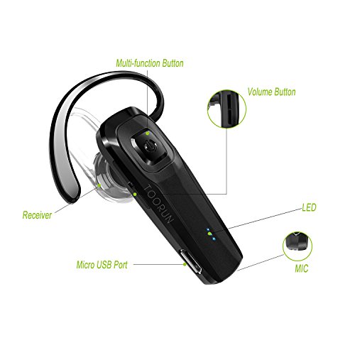 TOORUN M26 Bluetooth Headset V4.1 Bluetooth Earpiece with Voice Reminder and Noise Cancelling Mic for iPhone 7 Plus 6s 5s iPad Samsung Galaxy S7 Edge S6 S5 Note5 LG G5 V10 Motorola HTC Android-Black