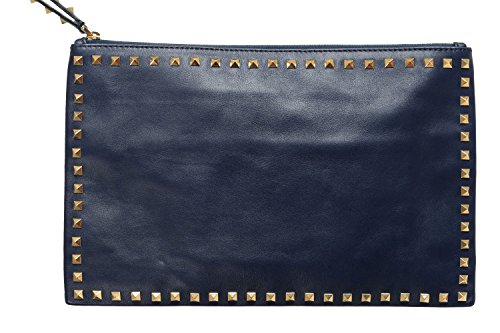 Product DescriptionValentino Garavani Leather Navy Rockstuded Women's Clutch Bag0
