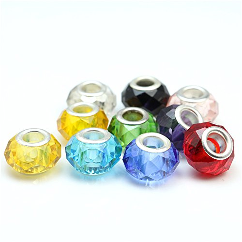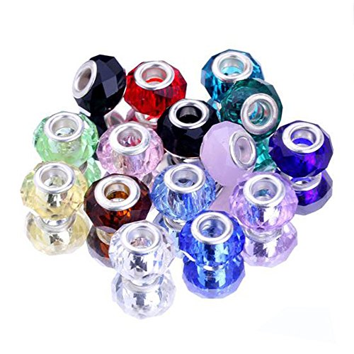 RUBYCA Mixed Faceted Murano Lampwork Glass Beads Fit European Charm Bracelet 14MM 50 pcs By eArt
