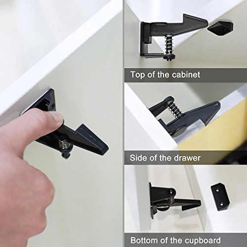 Child Safety Cabinet Locks, 10 Pack, Invisible Design, No Tools or Drilling Needed, Keep the Original Beauty of Furniture (black)