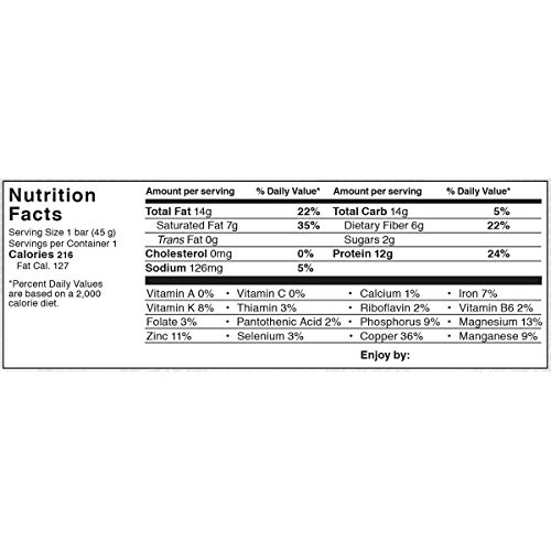 Upgraded Chocolate ingredients: Organic cashew butter, Bulletproof® Upgraded Collagen Protein, chicory root fiber, Bulletproof® XCTTM Oil Powder, (Caprylic and Capric Acid Triglycerides sourced from coconut and/or palm kernel oil) organic cashews, organic Bulletproof® Upgraded Chocolate Powder (raw cacao powder), Bulletproof® Brain Octane (Caprylic Acid Triglycerides sourced from coconut and/or palm kernel oil), organic coconut oil, sea salt, stevia. CONTAINS: TREE NUTS Processed in a facility that also processes peanuts, egg, soy, milk, wheat, fish, crustacean shellfish. Each bar has about 1.5 servings of collagen, and one serving of collagen is 1 tablespoon and 8.5g of hydrolysis collagen protein.Feature