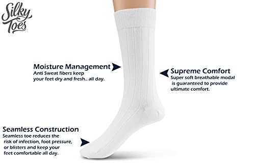 -. Binding : Apparel -. Brand : Silky Toes -. Department : womens -. Feature : SOOTHINGLY SOFT LENZING® MODAL Heavenly softness. The higher the share of Lenzing Modal®, the finer the fiber and the softer the material. / SEAMLESS TOE. Crafted with consumer's needs in mind, these socks are seamless at the toes. / REINFORCED HEEL AND TOE- These socks will not tear with wash and wear even at the high impact heel/toe area. / SWEAT FREE. Silky Toes exclusive modal women's Knee High Socks are guaranteed to keep your feet fresh and dry. They are Anti-bacterial, anti-fungal and breathable. Sweat absorbent material fights foot odor / STAYS UP. Knee length socks that has a strong grip and won't slide and become crew socks. -. IsAdultProduct : 0 -. ProductGroup : Apparel -. ProductTypeName : SOCKSHOSIERY -. Title : Silky Toes 1-2-4 Pk Modal Women's Knee High Boot Socks