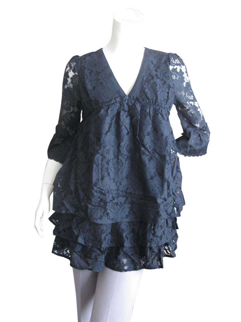 | 柔らかストレッチレースのVネック7分袖チュニックワンピース | |