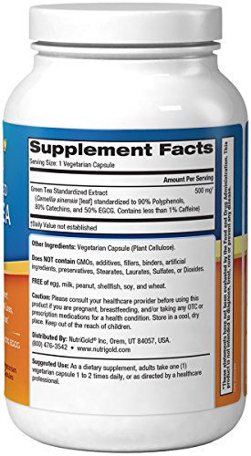 -. Title : #1 Green Tea Extract - Green Tea GOLD, 500 mg, 180 Vegetarian Capsules - Decaffeinated Green Tea Fat Burner Supplement for Weight-loss (98% Polyphenols, 50% EGCG)