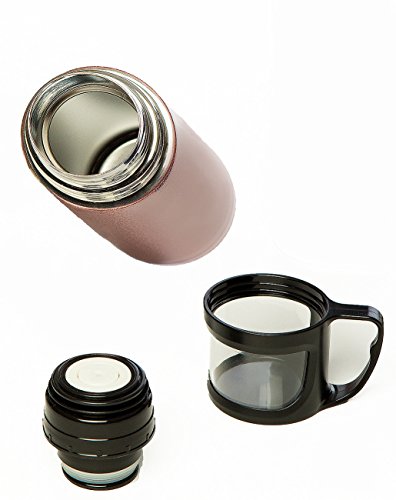 TRAVEL SIZE (17 oz, 500 ml), DURABLE, NEW SCREW TOP DESIGN. Food grade stainless steel walls inside and outside. BPA free, FDA approved. Fit in car caddy, backpack and briefcase. Each mug has its own Cup - Leak Proof - Better temperature control to keep beverages hot or cold mean better lifestyle