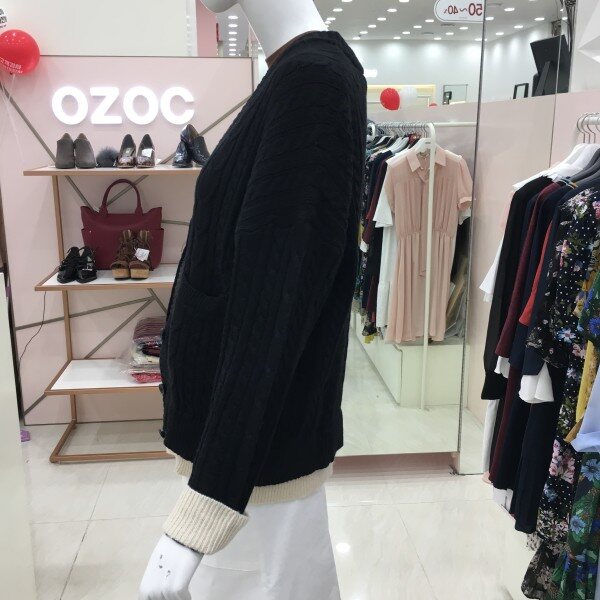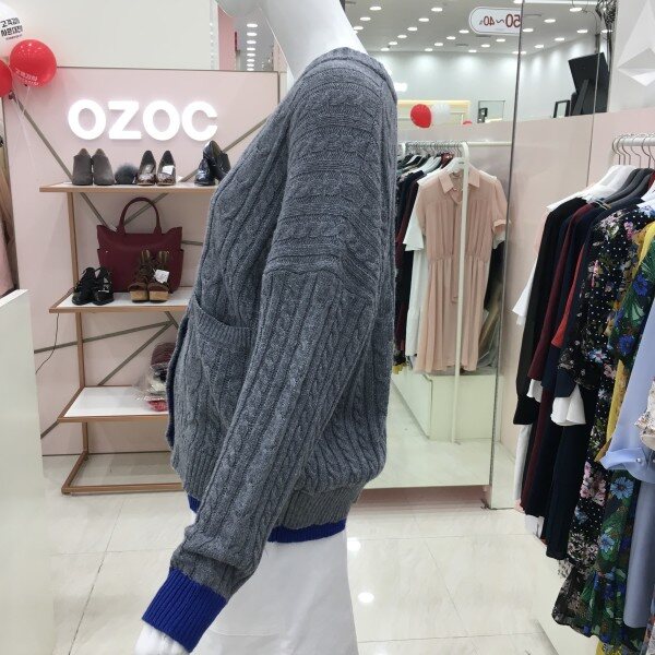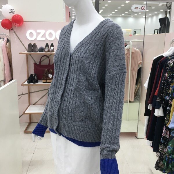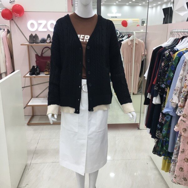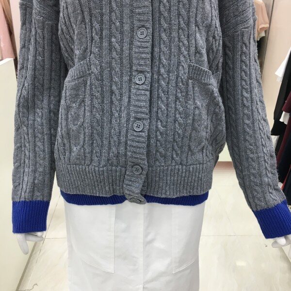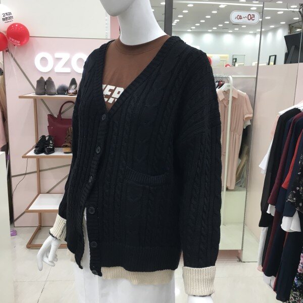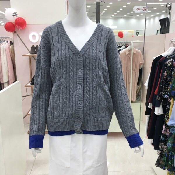 꽈배기짜임의 니트 가디건 소개해드려요.컬러배색이 들어가있어 기본이지만 포인트 아이템으로 활용하기 좋습니다.