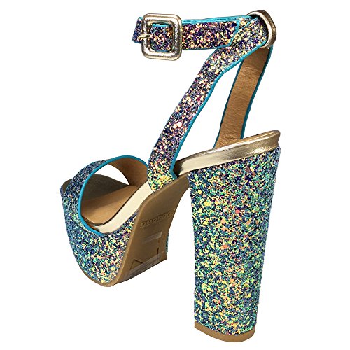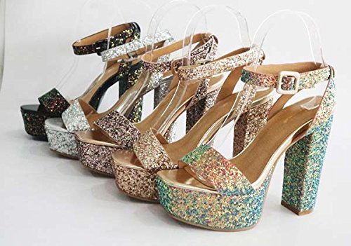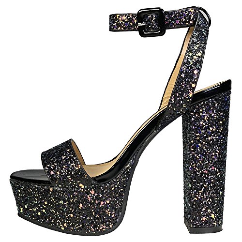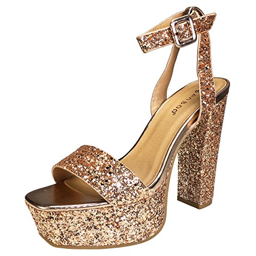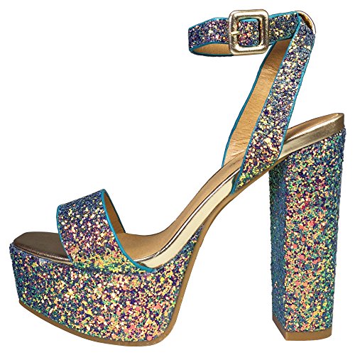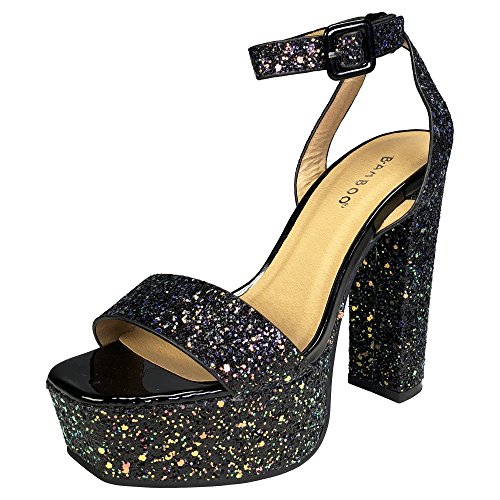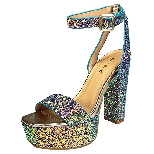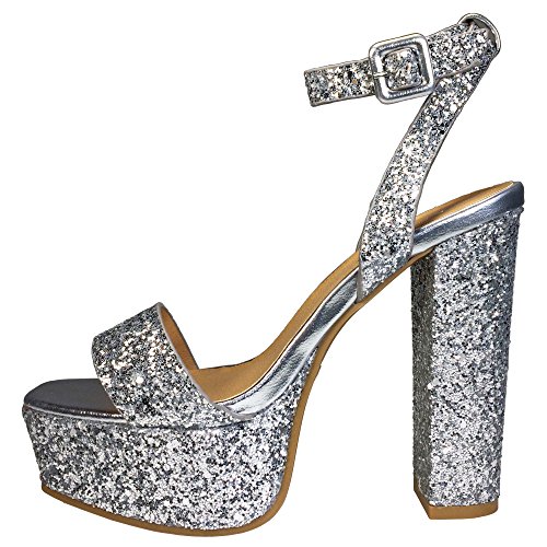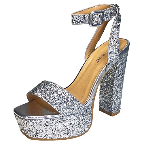 BAMBOO Women's Single Band High Platform Sandal with Ankle Strap in Glitter