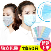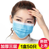成人加厚三层印花无纺布一次性口罩医用防病菌防尘防雾霾口罩50只
