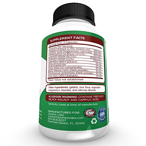 - Feature : WITH OREGANO EXTRACT - From Georgetown University Medical Center: "the daily oral administration of origanum oil may be highly effective in the prevention and treatment of candidiasis." / WITH CAPRYLIC ACID - 400mg of this potent antifungal kills Candida cells to combat yeast infections and support a balanced digestive system*. / WITH ENZYMES AND PROBIOTICS - Helps reduce candida "die-off" symptoms of nausea, headaches, pain, breakouts by digesting the dead Candida toxins and replacing them with healthy bacteria*. / NEUTRAL TASTE - These capsules are designed to go down smoothly with no hints of garlic, rotting grass, or other rank odors. / 110% LIFETIME GUARANTEE - You won't find a better guarantee anywhere else. Our guarantee is simple: you are protected FOR LIFE. If for any reason or no reason whatsoever you are dissatisfied with this product, let us know and we will give you 100% of your purchase price back no questions asked. Furthermore, we'll even donate 10% to charity. Yes: we believe in our product so much that we can offer you this insane guarantee.