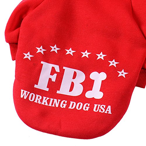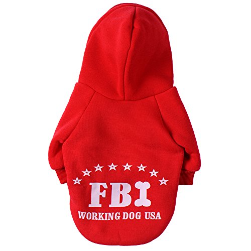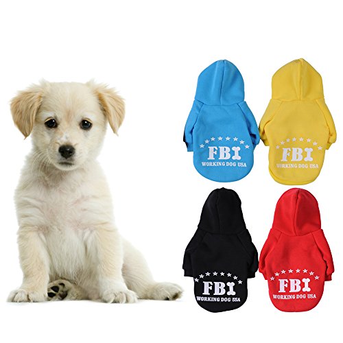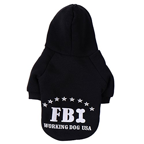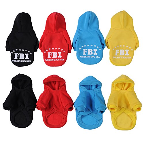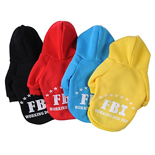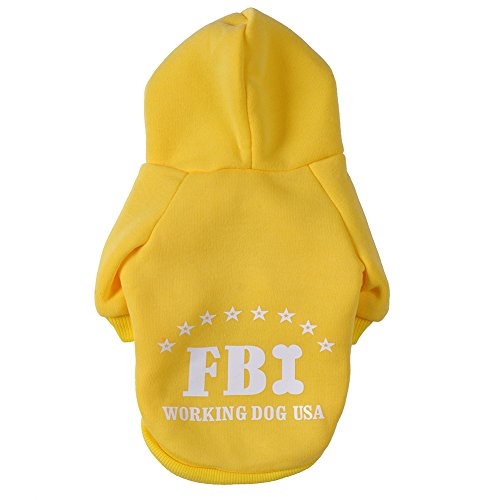 -. Feature : Materials:Cotton + Cashmere;Cute FBI pattern design Pet Cats Dogs Hoodie; / Black,Red, Blue,Yellow for choice;Full size XS, S, M, L, XL, XXL, Available; / Cute design makes your pet looks fashionable,protect your pets from cold; / Your fur baby will be wrapped in comfort with this cozy item; / A perfect gift for your pet dog puppy.