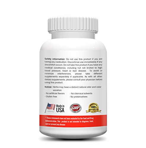 - LegalDisclaimer : Do not use this product if you taking any medication. Discontinue use immediately if any discomfort occurs. Do not take this product if you have any medical condition(s), including but not limited to high blood pressure, heart or liver disease. Please take different supplements separately. As with all other dietary supplements, please consult your physician before using this product.