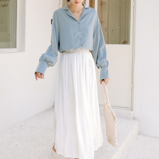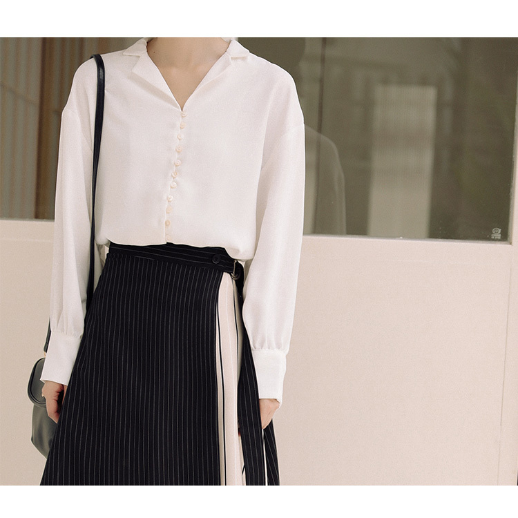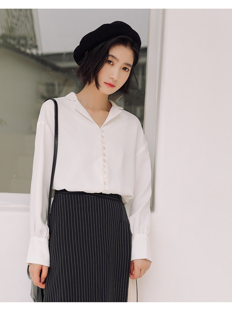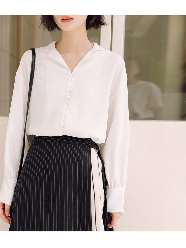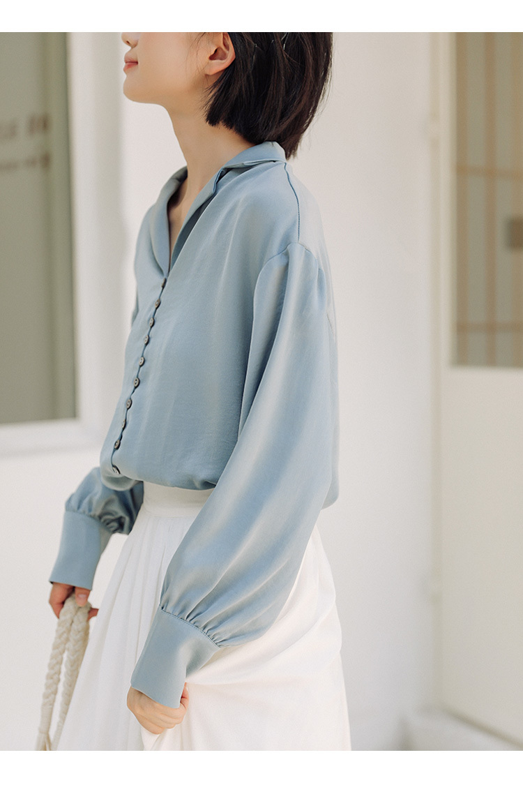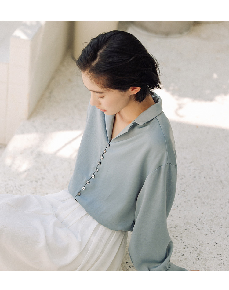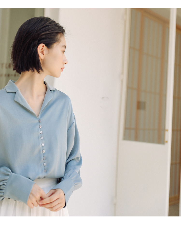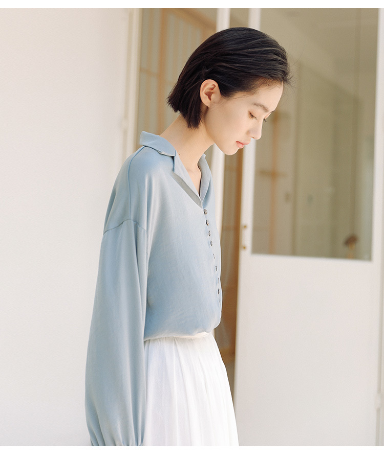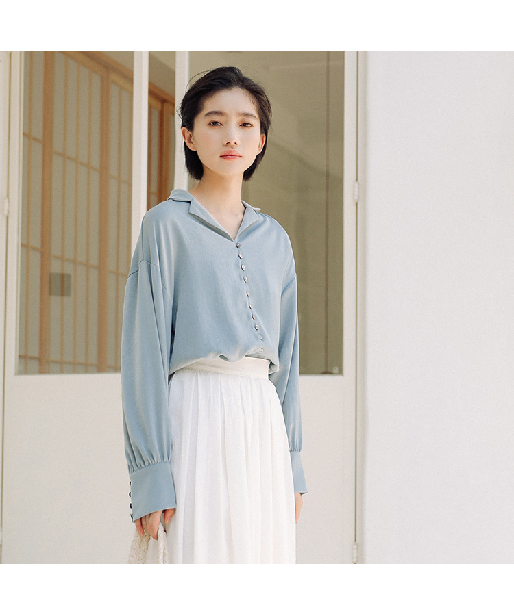 デコルテが綺麗に見えるVネックとフロントのボタンのデザインがとってもオシャレな1枚です。