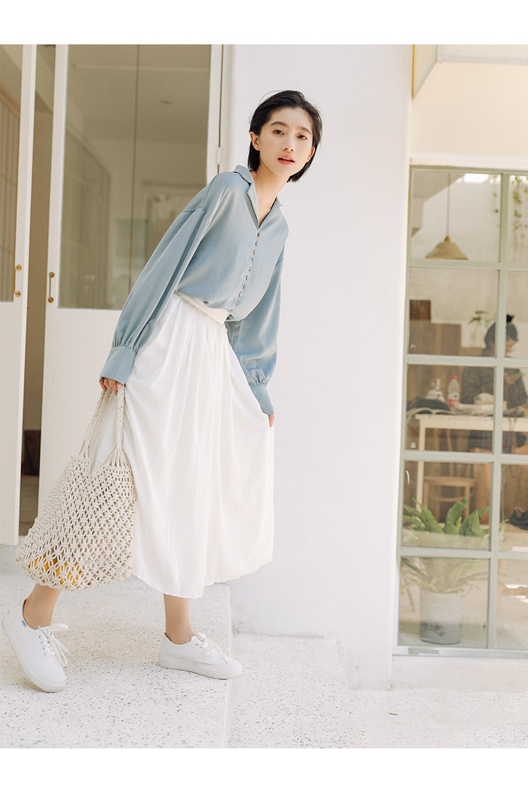 シンプルなデザインで着回し力の高いシンプルな大人シャツ♪