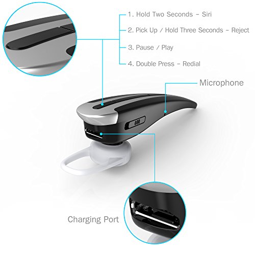 5. CONNECT TO TWO DEVICES --- Comes with Bluetooth 4.1 and integrated multi-point design, this Bluetooth earbud can pair to two different devices at the same time. This allows you switch between your business and personal phones with no issue.