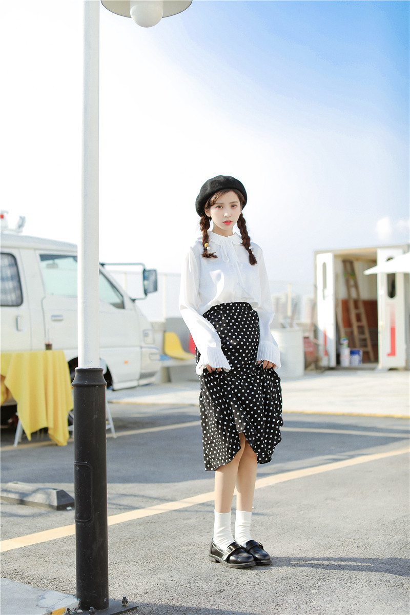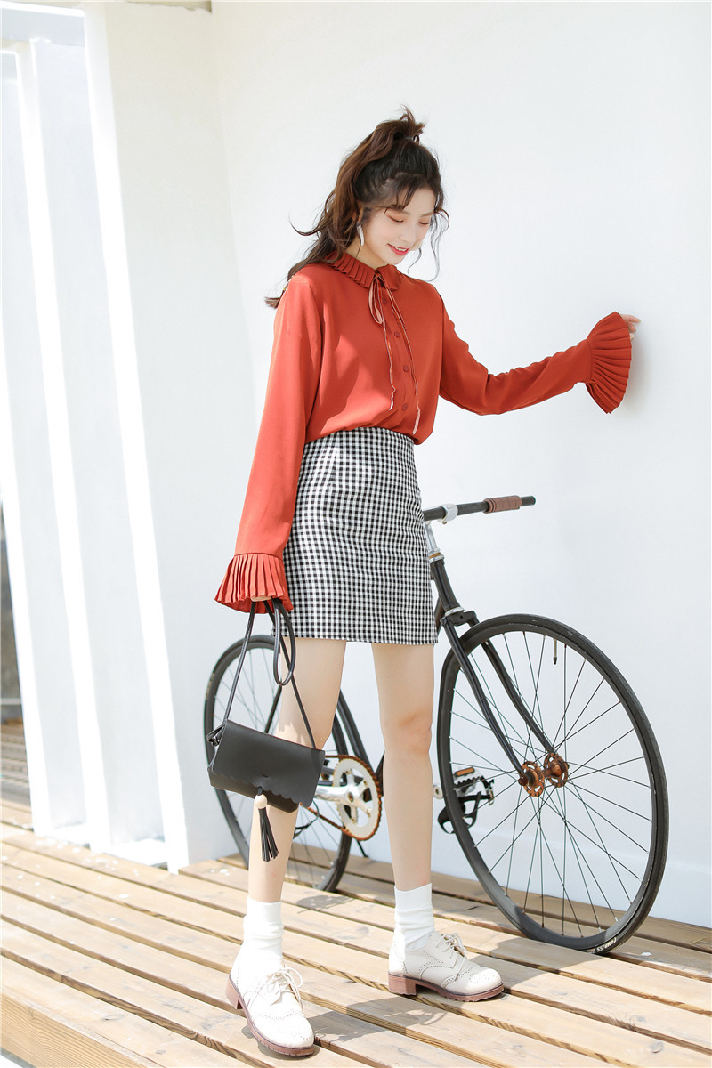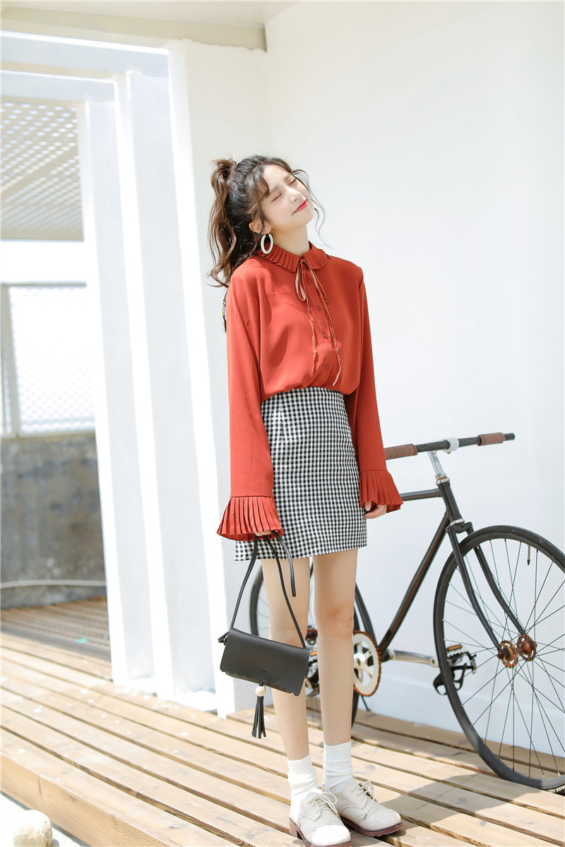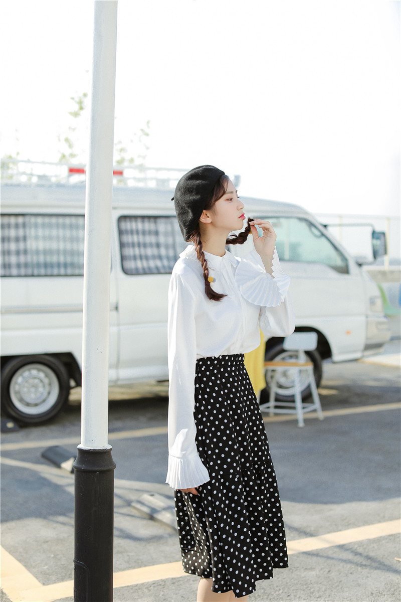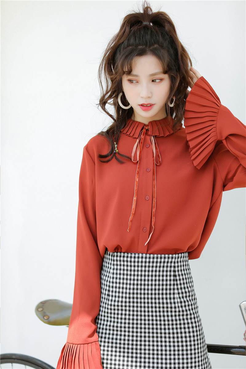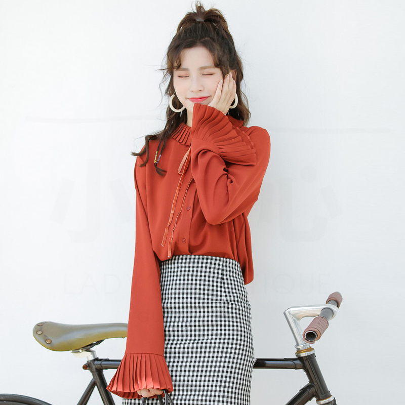 プリーツ襟と同様のスリーブデザインがキュートなポイントのオススメアイテムです。