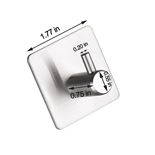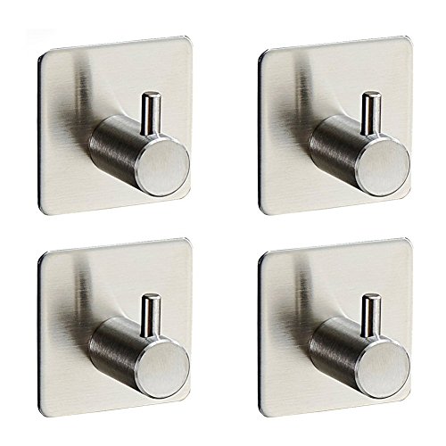Seventopia Heavy Duty Hooks Wall Mounted 3M Adhesive Modern Square Robe Towel Coat Hooks Brushed 4 Pack
