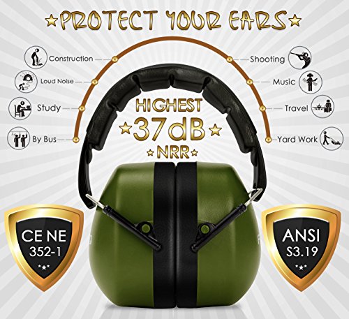 FRiEQ 37 dB NRR Sound Technology Safety Ear Muffs with LRPu Foam for Shooting, Music & Yard Work, Green