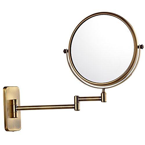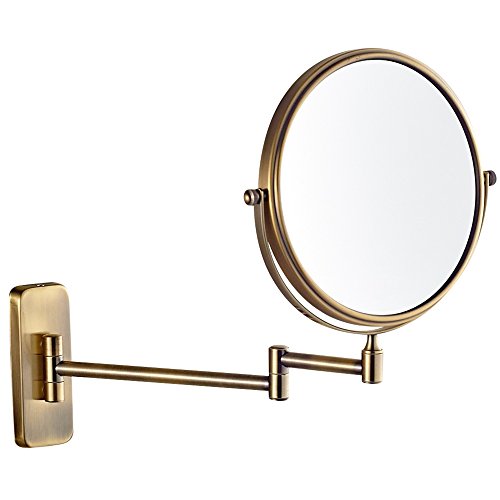GURUN 8-Inch 2 Face Wall Mount Makeup Mirrors with 5x Magnification, Antique Brass Finished M1406N(8 inch5Magnification)