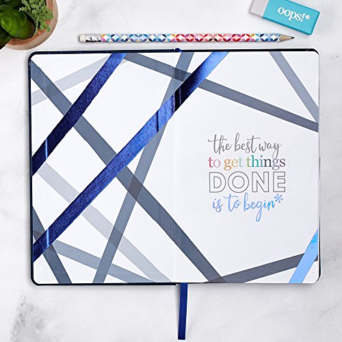 The 5x8 notebook includes a satin page-marker, metallic paper stripes design and beautiful painted edges to up the elegance