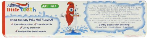 -. Binding : Health and Beauty -. Brand : Aquafresh -. EAN : 0721865531019 -. Feature : Please be aware that unless expressly indicated otherwise, Cooking Marvellous are not the the manufacturer of this product. Product packaging may vary from what is shown on this listing. We recommend that you do not rely solely on the information presented on our listing. Please always read the labels, warning and directions provided before using or consuming the product. -. IsAdultProduct : 0 -. Label : Groceries -. Manufacturer : Groceries -. Model : 3272796 -. MPN : 3272796 -. PackageQuantity : 2 -. PartNumber : 3272796 -. ProductGroup : Beauty -. ProductTypeName : HEALTH_PERSONAL_CARE -. Publisher : Groceries -. Studio : Groceries -. Title : Aquafresh Little Teeth Toothpaste 3-5 Years (50ml) - Pack of 2 -. UPC : 721865531019