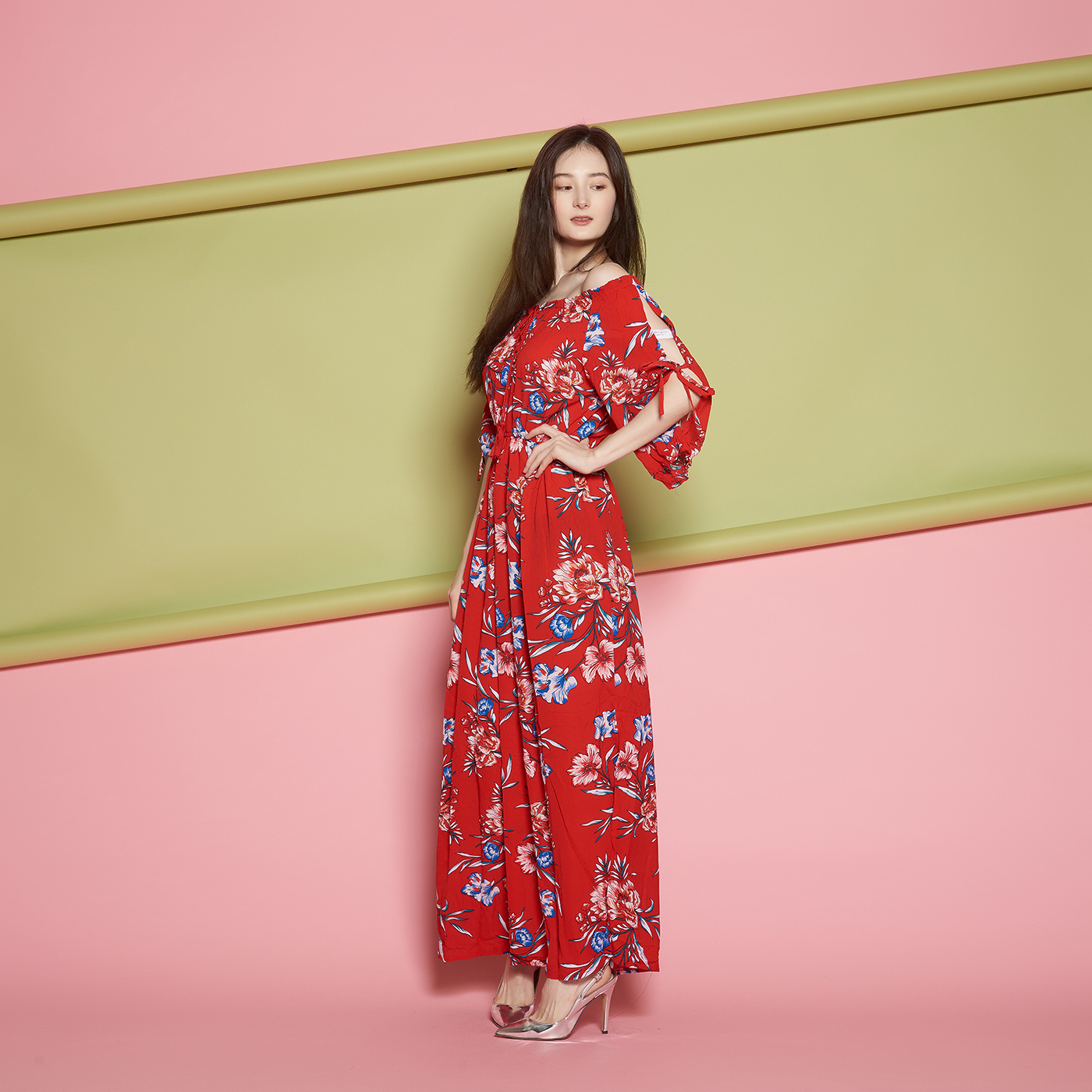 앞라인의 수술과 소매옆라인의 디테일이 예쁜 패턴도 아름다운 원피스입니다.