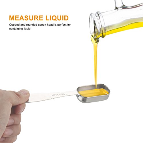 - A Musthave Spoons Set in Your Kitchen-You can easily measure dry and liquid ingredients such as spice, sugar, salt, oil, coffee, and more for making your perfect cooking and baking!