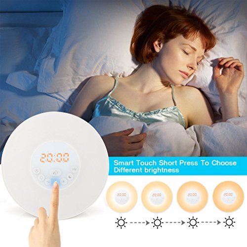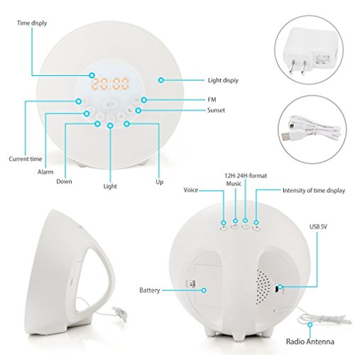 - Easy to Set Up - Sunrise Simulation Alarm Clock-30 minutes before set time, the sunrise simulation white light will be on from 1% of brightness to 100% of brightness at set time to prepare our body for waking up and getting alert