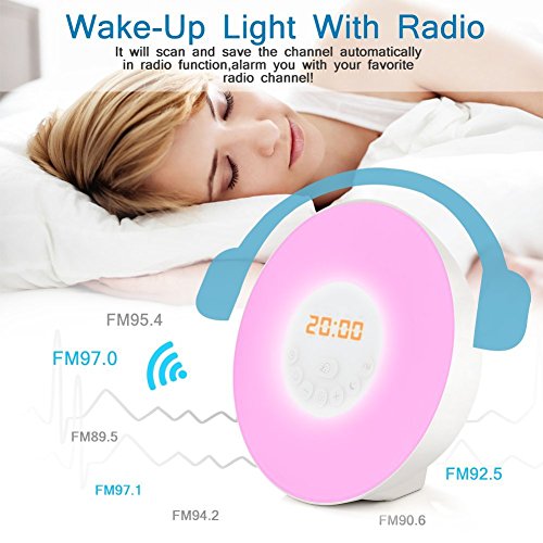 - New Design Morning Sunrise Simulation - Wake-Up Alarm Light clock, Wake up light, LED nightlight, nursery night light, baby/ kids/ children’s/ night light, nightlight for kids, FM radio, bedside lamp, led lamp