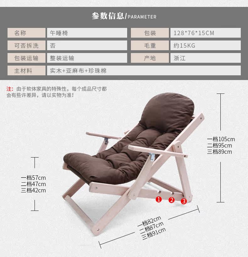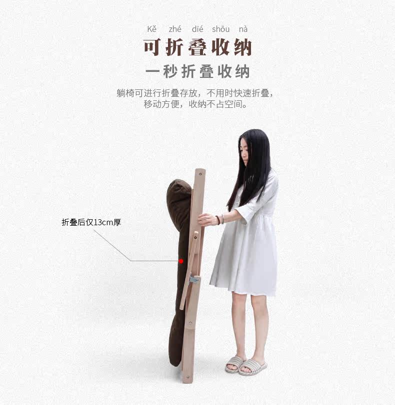 󰄬实木躺椅午睡折叠椅可调节沙发椅休闲椅阳台飘窗椅实木布艺椅子