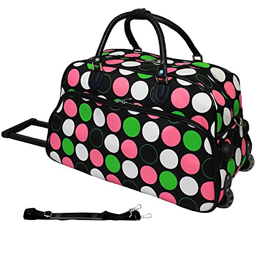 -. Feature : Girls Pink Green Polka Dots Pattern Wheeled Duffle Bag Upright Rolling Duffle, Beautiful All Over Geometric Dotted Carry on Duffel, Travel Wheeled Duffel with Wheels, Wheeling Luggage, Fashionable / Colorful Polka dot pattern and design make this rolling duffle a unique Bag. / Set Include: One Duffel Bag / Dimensions: 12 inches high x 11 inches wide x 22 inches long / **ITEM INCLUDES Exclusive DIAMOND HOME EBOOK**